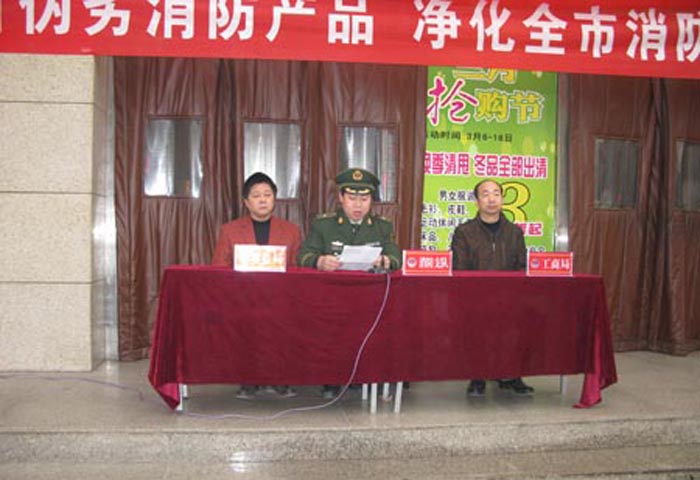 2010年3月14日上午,邢臺市消防支隊在購物廣場前舉行了假冒偽劣消防產品集中銷毀儀式。邢臺市消防支隊、橋西區質量監督局、橋西區工商局的領導們親臨現場主持會議,并向大家宣講了假冒偽劣消防產品的危害性。這次針對假冒偽劣消防產品的銷毀活動,使廣大員工朋友懂得了假冒偽劣消防產品給人們帶來的危害及嚴重后果。