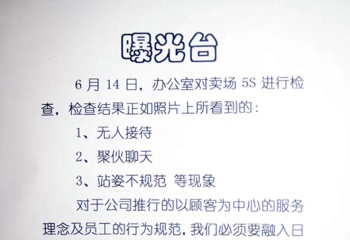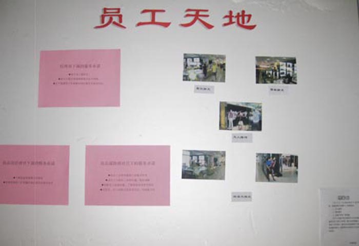 自五月份以來,大洋百貨顧客管理科組織各樓層開辟員工展示墻,展示墻內容包括:公司向員工傳達的企業精神、員工風采、技能知識、曝光臺等,展示墻固定每月更新兩次。展示墻的搭建不僅是員工間相互學習的平臺,也能激發員工積極性,也是員工了解企業文化的重要途徑,反映了公司以員工為中心的管理理念。
