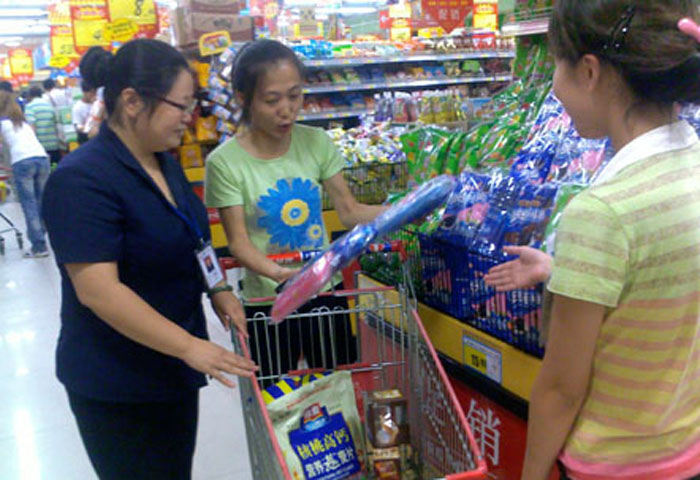 為向會員提供更好的優質服務,超市廣場店客服經理率領員工共同完成了模擬陪同高端會員購物的過程,通過本次的模擬使我們更清晰陪同會員購物的過程,加深了“以顧客為中心”服務理念的宣導和落實。模擬完成后客服經理總結:雖然日常工作中還沒有實際陪同顧客購物,但是我們平日看到手腳不方便的顧客要多一點細心,多為他們提供一些幫助,以方便此類顧客,尤其是遇到老年顧客行走不便時,更要有這樣的服務意識,視所有顧客為尊貴顧客的意識來提供服務,優質服務從一點一滴做起,優質服務我們要更努力!