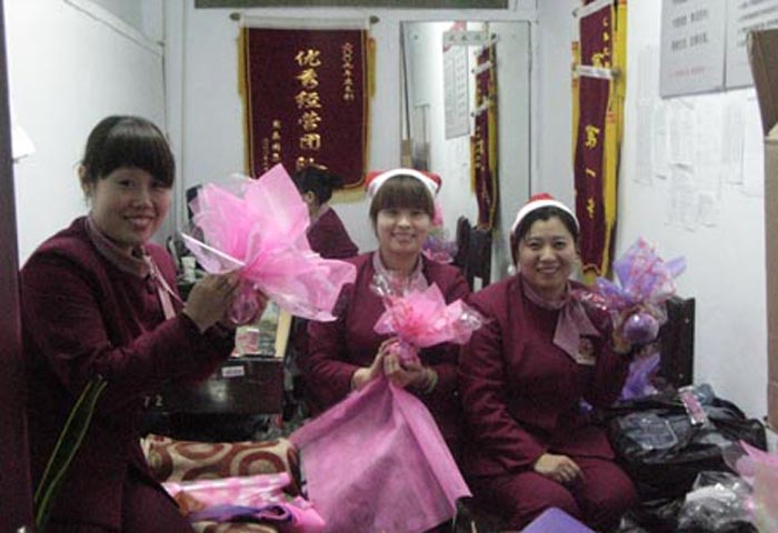 帶著圣誕的吉祥,捧著真摯的祝福,包上2010年的平安、送上一份快樂、在這即將開啟新的扉頁的前夕,家樂園百貨廣場店領導把這吉祥、平安、快樂、幸福親自傳遞到公司的每一個員工。12月24日,家樂園百貨廣場店為包含家電商場聯營員工在內的1300余名員工每人包上了一份象征吉祥、平安的平安果。這份平安果由公司綜合部組織員工親自包裝,24日晚公司領導分組到基層親自為每名員工送去一份平安,同時更帶去了公司領導對全體員工的慰問,領導的一句平安快樂,員工的一聲真誠致謝,匯集了團隊的和諧音符。