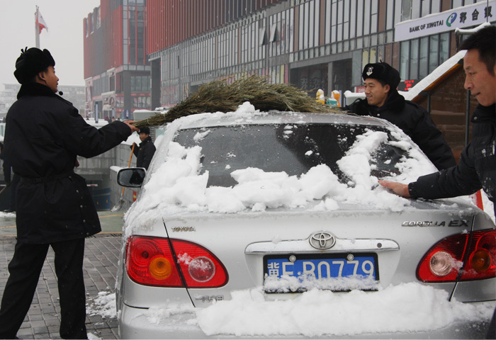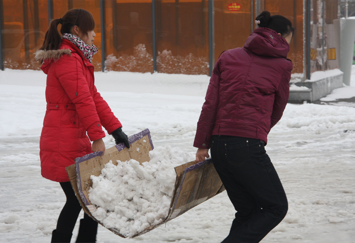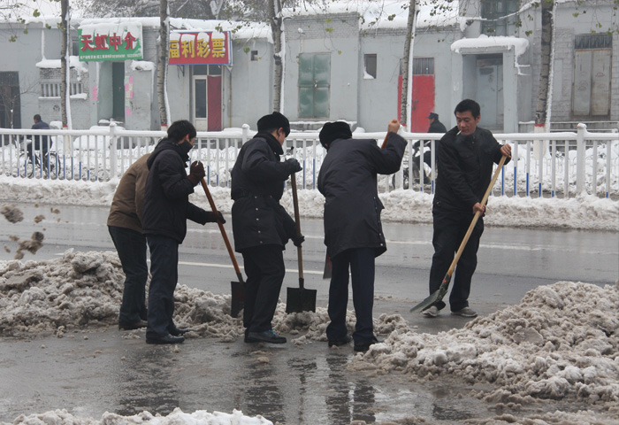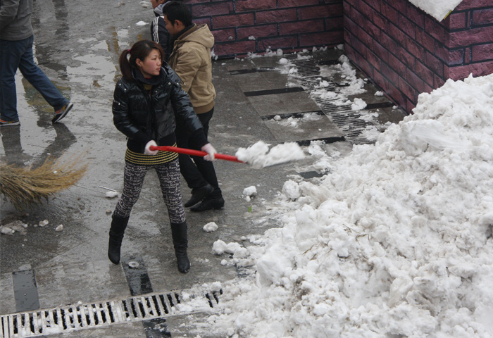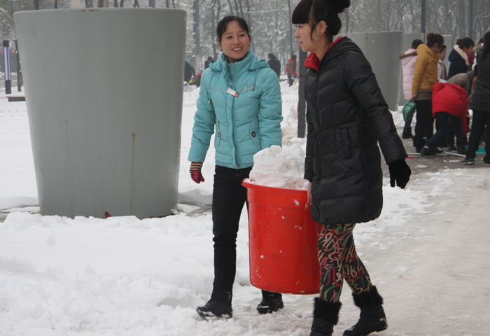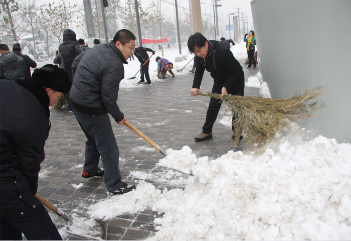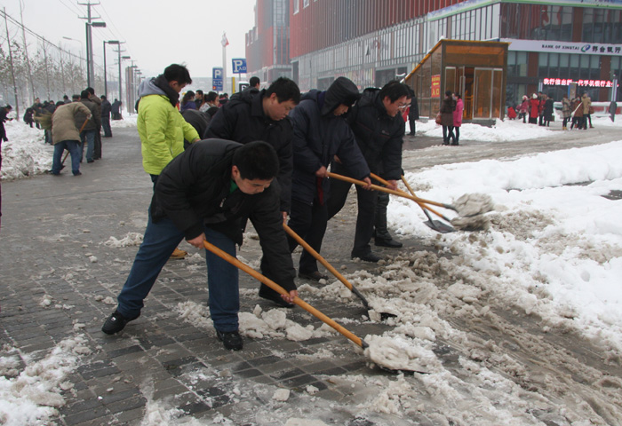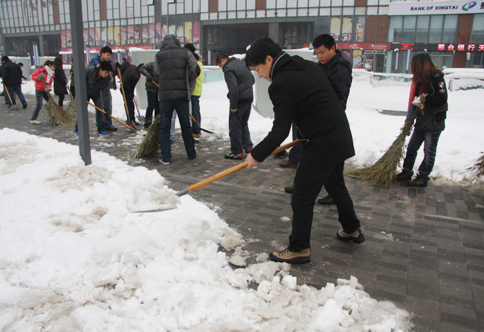 2011年11月29日,邢臺迎來了今冬首場降雪,市區積雪40厘米,達到暴雪級別,大片雪花漫天飛舞從天而降,整個邢臺市區籠罩在一片白茫茫的雪景之中,銀裝素裹,煞是好看。當然,這也給大家的出行帶來了一定的困擾。 為了防止積雪冰凍,保持天一廣場內外道路暢通,為前來天一廣場購物的顧客及行人提供安全、便捷的環境。11月30日上午8時,邢臺天一廣場商業管理公司組織人員清理天一廣場內外主要道路積雪。在公司領導的帶領下,員工們奮力地揮動鐵鍬、掃帚及各種能鏟雪的工具,鏟的鏟、掃的掃、推的推……員工們熱火朝天的勞動場面,不禁讓人想到“人心齊 泰山移”這句話。經過了短短的一個多小時,在大家的共同努力下,天一廣場前的馬路、內街、及商戶門前的積雪都已清掃干凈,保障了大家出行的安全及便捷。在這次集體鏟雪活動中,體現了家樂園人的團結、真誠,同時增添了和諧氣氛。是什么力量支撐大家,克服清晨零度以下的氣溫,踏著積雪泥濘的道路,早早來到了天一廣場前參加掃雪鏟冰呢?很簡單,是我們十幾年來一直傳承的“家文化”。是家人的團結、真誠,是家人的無私奉獻,是家人的互幫互助,讓我們為著一個共同的目標與愿景走到了今天,走向未來……