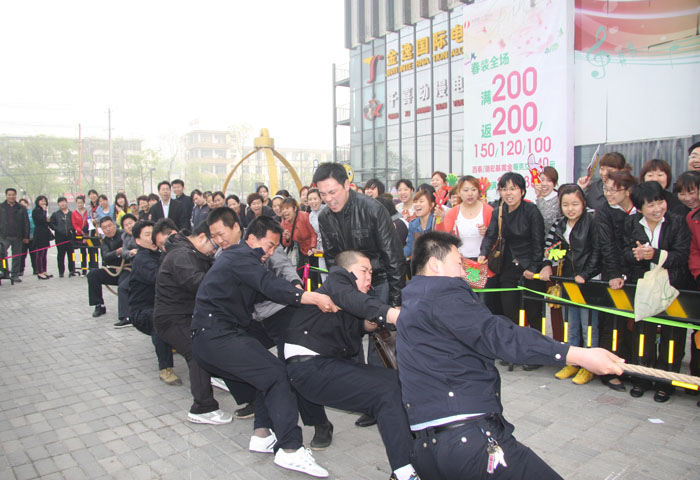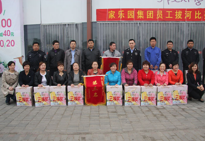 2012年4月17、18日,在天一廣場前舉行了“家樂園集團員工拔河比賽”。家樂園的所有員工都參與到了此次比賽中,通過前期的初賽、復賽,各個單位選出最合適的選手組建團隊,參加集團17、18日為其兩天的比賽中。比賽不是目的,家樂園通過舉辦多種類似的文娛活動,豐富員工業余生活,增強員工團隊榮譽感,使員工真正意識到,只要來到家樂園,我們就是一家人,攜起手來,共創明天。