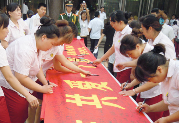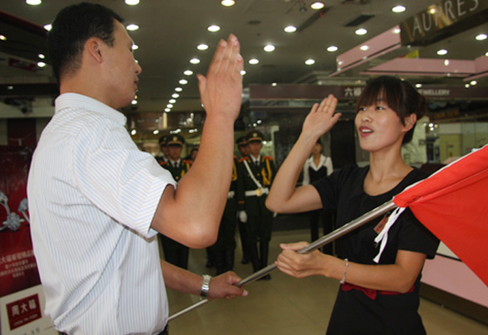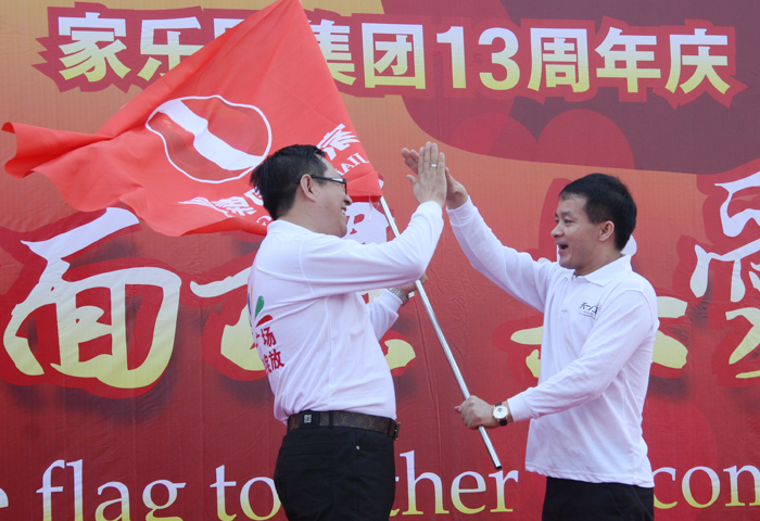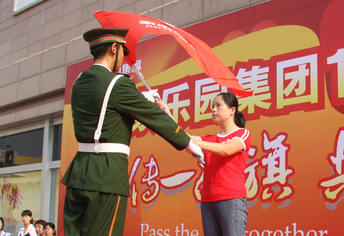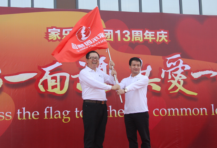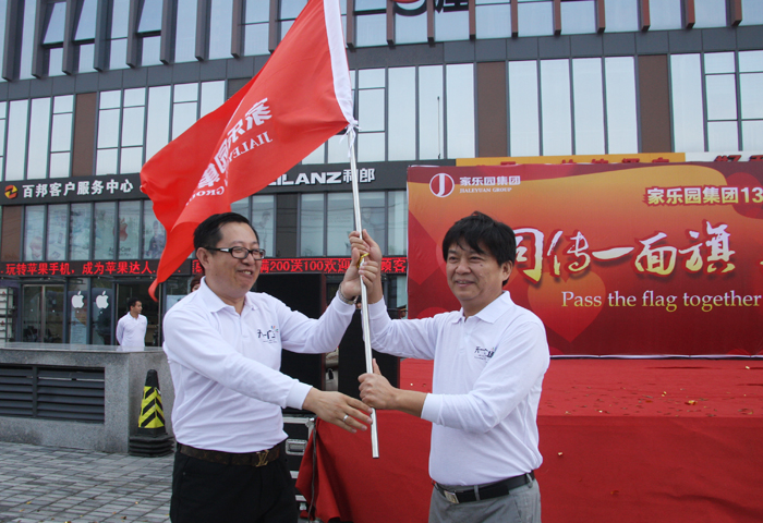 高亢的司歌唱響華麗的篇章,璀璨的禮賓花綻放喜悅的色彩,兩面鮮艷的旗幟讓我們心潮澎湃!這是一個特別的日子,這是黨的生日,這是家樂園13周年“慶典月”的第一槍,這是“同傳一面旗 共愛一個家”司旗萬人傳遞活動正式啟動的日子……