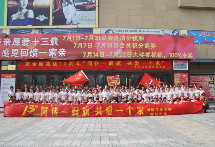 13年了!13年的風(fēng)風(fēng)雨雨,13年的并肩攜手,13年的患難與共我們一起來見證!如今的家樂園已長成一棵參天大樹,在她13周歲生日到來之際,集團(tuán)舉辦司旗傳遞活動進(jìn)行慶祝。經(jīng)過連日的傳遞,司旗傳遞的接力棒終于到達(dá)沙河店!