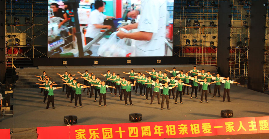 伴隨著國旗的冉冉升起,“家樂園集團14周年慶典儀式”于7月18日下午14時準時開始。董事長廖禮基上臺與在座的4000余名員工共同分享家樂園這14年來的艱辛歷程和輝煌成就,并一再強調這輝煌的背后,是所有家樂園人在支撐,所有的成就,都屬于家樂園員人!分享過后,儀式進入第二個環節——精彩的會操比賽。各單位共計16支隊伍將自己最佳的狀態通過會操體現出來。這并不只是簡單的會操比賽,通過比賽,我們看到了“家人們”的精氣神,看到了一種拼搏、奮進、愛家的精神。比賽過后,跟隨了家樂園14年的6名老員工分享了自己與企業的成長經歷。14年,風雨變幻,唯一不變的,是對家的情,對家人的愛。