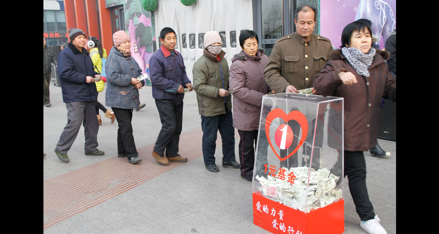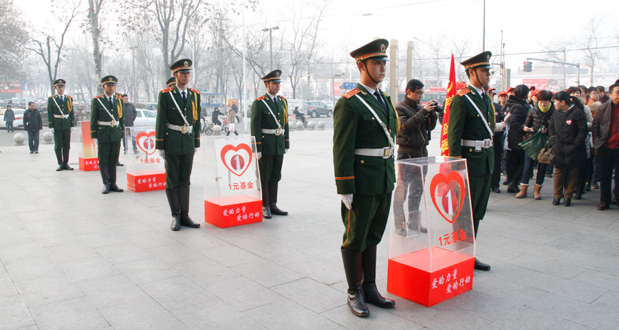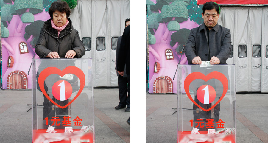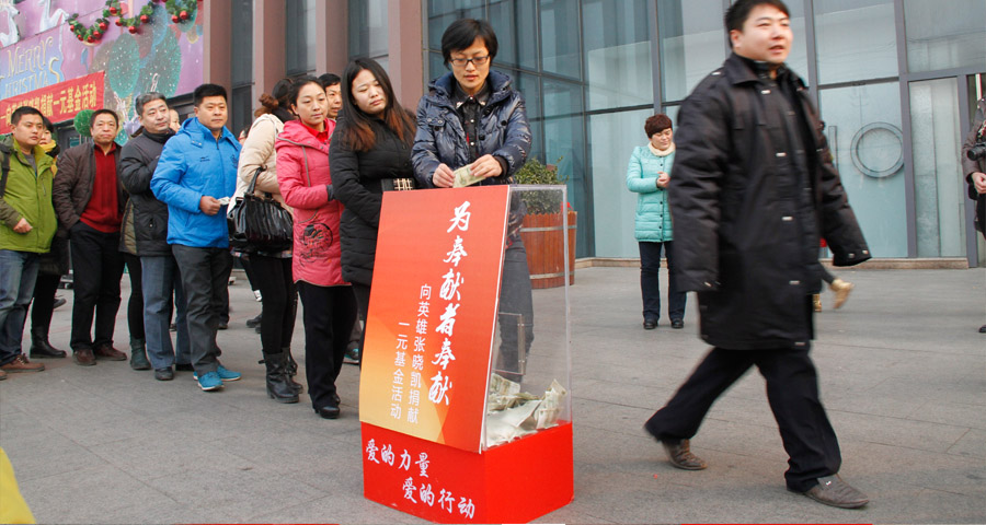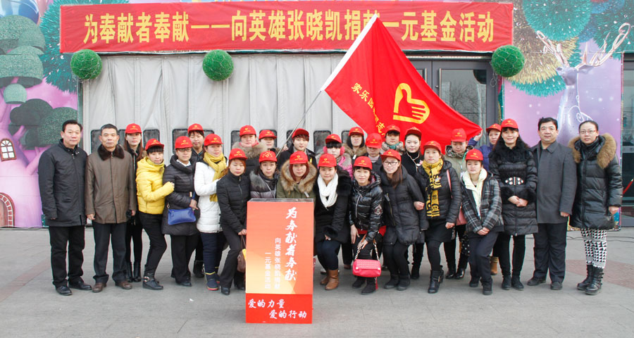 1月13日清晨,“為奉獻(xiàn)者奉獻(xiàn)——向烈士張曉凱捐獻(xiàn)一元基金活動(dòng)”啟動(dòng)儀式在家樂(lè)園集團(tuán)天一廣場(chǎng)隆重舉行。捐獻(xiàn)儀式開(kāi)始,在身著儀仗服裝服務(wù)人員的引導(dǎo)下,四個(gè)精致的捐款箱由指定人員放置現(xiàn)場(chǎng),數(shù)千名來(lái)自市區(qū)部分企事業(yè)單位、愛(ài)心社團(tuán)人員以及社會(huì)民眾自覺(jué)排成長(zhǎng)隊(duì),為烈士張曉凱奉獻(xiàn)自己一份真摯的愛(ài)心。家文化是家樂(lè)園集團(tuán)的企業(yè)文化符號(hào),“家文化一元基金”是家樂(lè)園集團(tuán)員工首創(chuàng)發(fā)起的公益基金活動(dòng),這是繼一元基金向魯?shù)闉?zāi)區(qū)捐款后,第二次在社會(huì)上綻放出愛(ài)的絢麗之花。