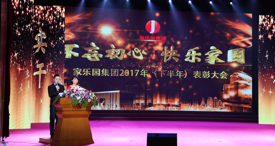 3月28日下午,在冶金俱樂部,家樂園集團召開了2017年度下半年表彰大會。主題為“不忘初心,快樂家園”,表彰會主要分為回顧卓越篇、頒獎盛典篇、節目演出篇、未來承諾篇。